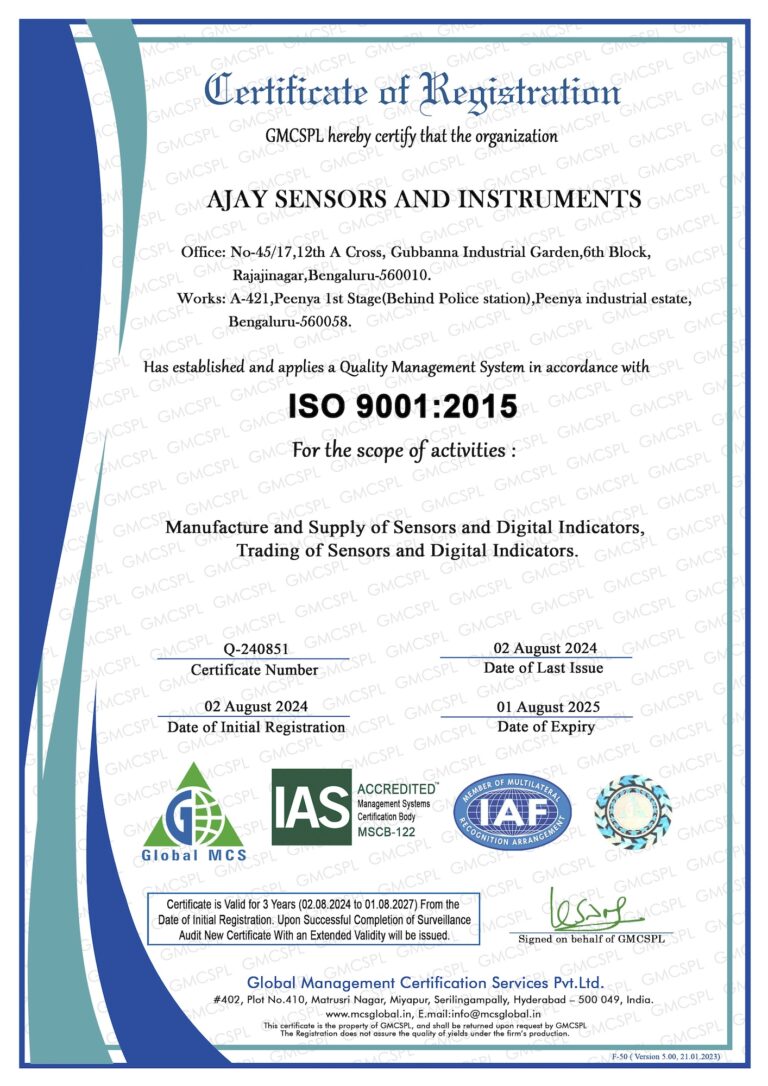 Ajay Sensors & Instruments, Established in 1992 by Mr. M.V. Vrishabhendra, Ajay Sensors & Instruments specializes in high-quality test and measurement instrumentation, covering load, force, pressure, torque, displacement, motion, vibration, sound, vacuum, and strain. Initially focused on transducers and digital indicators, the company has grown into a trusted name in instrumentation.